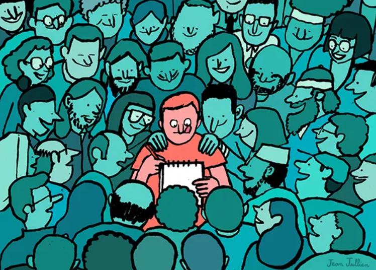 이후 그의 작품들을 찾아보면서 느낀 건, 장 줄리앙은 '일상의 아이러니'를 누구보다 잘 포착하는 사람이라는 점이다. 사람들 사이의 거리감, 끊임없이 무언가를 소비하는 도시인, 미소 짓고 있지만 외로워 보이는 얼굴들. 모든 장면이 아주 단순한 그림으로 표현되지만, 그 안엔 우리가 지나치고 있는 감정이 꼭 숨어 있다.