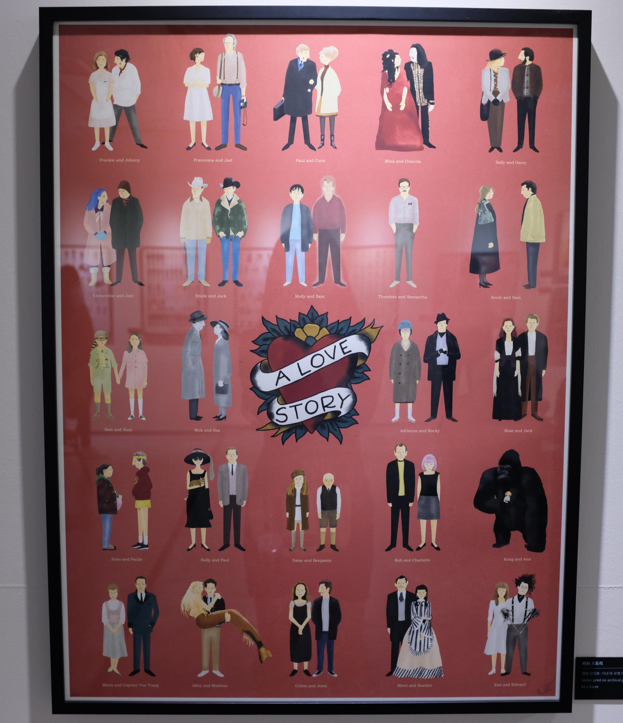 특히 인상 깊었던 작품은 <그랜드 부다페스트 호텔>을 재구성한 일러스트였다. 호텔의 단면을 펼쳐놓은 듯한 구성 안에 수많은 캐릭터들이 각자의 이야기 속에 머무르고 있었다. 그 그림 하나만으로도 영화 전체의 감정선과 유머, 미장센이 모두 압축된 느낌이었다. 그림 앞에 서서 그 장면들의 대사와 음악이 저절로 떠오를 정도였다.