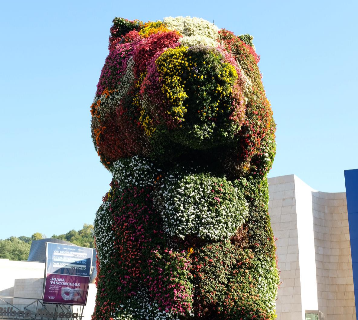내가 제프 쿤스의 작품을 실제로 처음 본 곳은 스페인의 빌바오 구겐하임 미술관이었다. 미술관에 들어서기 전, 입구 광장에서 마주한 거대한 꽃 조형물 <퍼피(Puppy)>였는데 사이즈가 너무 커서 자연스레 시선이 갔다. 인기가 많은 만큼 수많은 사람들이 그 앞에서 기념사진을 찍고 있었다. 수천 송이의 생화로 뒤덮인 이 대형 강아지 조형물은 계절마다 꽃의 색이 달라진다고 하는데 내가 갔을 때는 하얀색, 핑크색, 노란색 등 다채로운 색이 어우러져 생동감이 넘쳐 눈길을 사로 잡았다.