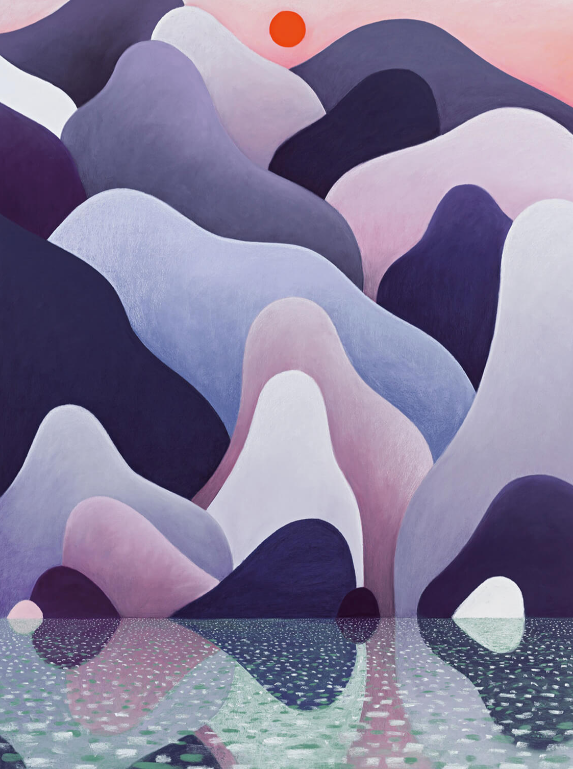 그의 인물화나 풍경화는 복잡한 디테일을 걷어내고 단순화된 형태를 택한다. 얼굴은 기묘하게 매끈한 표정으로 표현되고, 나무나 산은 기하학적 구조를 닮은 모습으로 재현된다. 이 단순화 덕분에 관람자는 형태에 얽매이지 않고 색과 분위기에 집중할 수 있다. 동시에 익숙하면서도 낯선 비현실적인 풍경 속에 빠져드는 경험을 하게 된다.